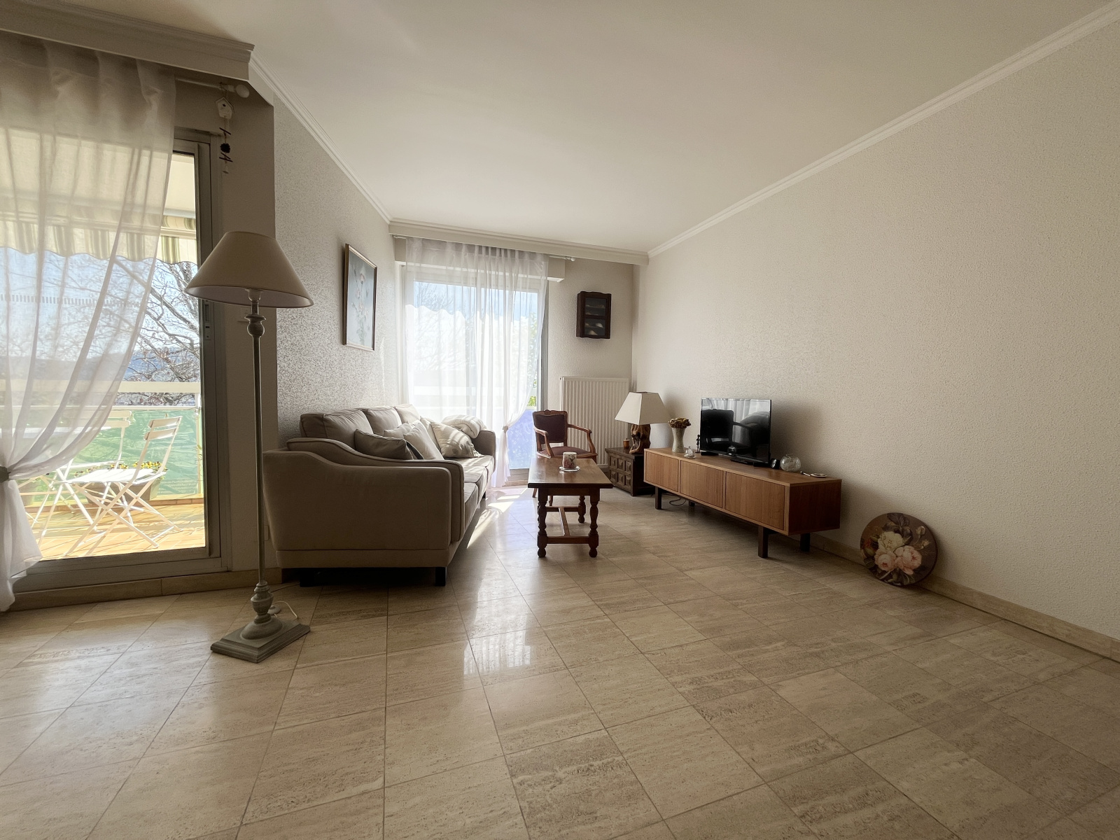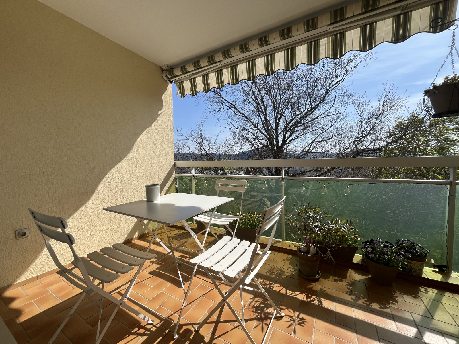 En bon état, cet appartement est équipé de fenêtres en aluminium double vitrage et de volets roulants motorisés.