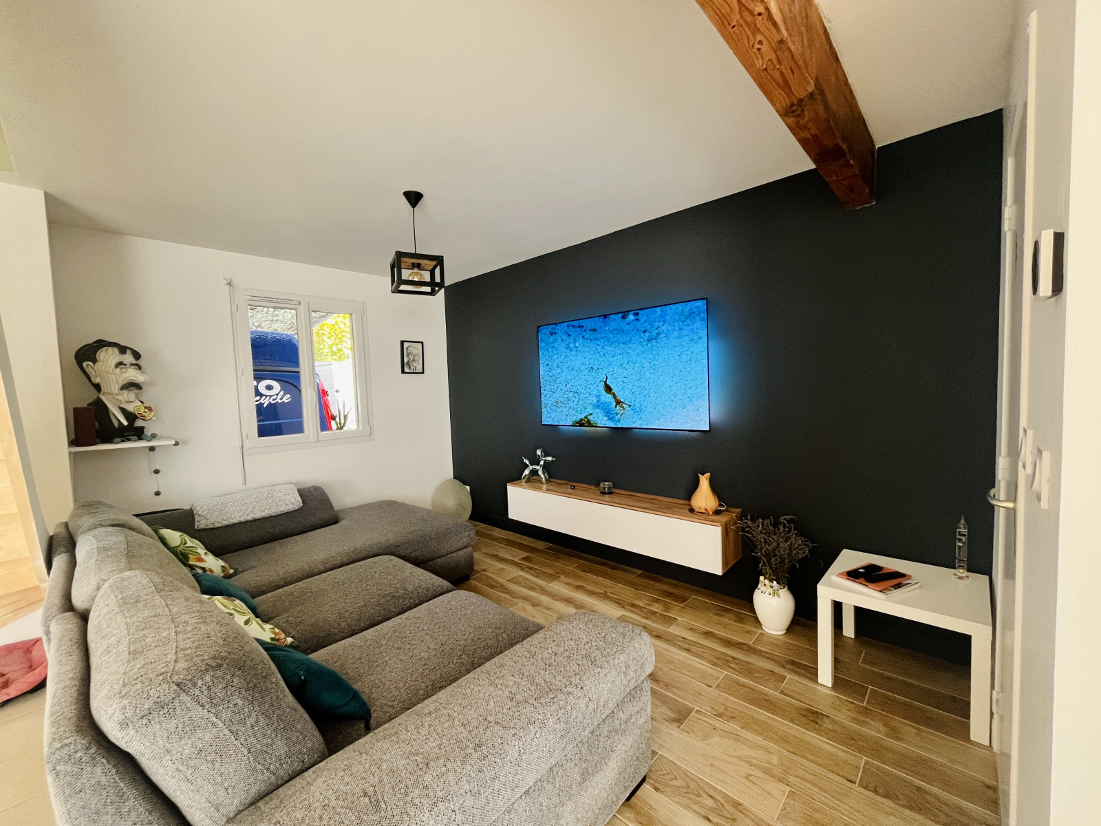 La propriété est entièrement clôturée, pour plus de sécurité, parfait pour vos enfants et vos animaux. Le jardin est aménagé avec goût et offre un bel espace vert pour profiter des beaux jours d'une superficie totale de 725 m². A noter, la maison est équipée d'un chauffage central par pompe à chaleur, de fenêtres en PVC et de volets roulants, garantissant une isolation thermique optimale et une haute sécurité.
