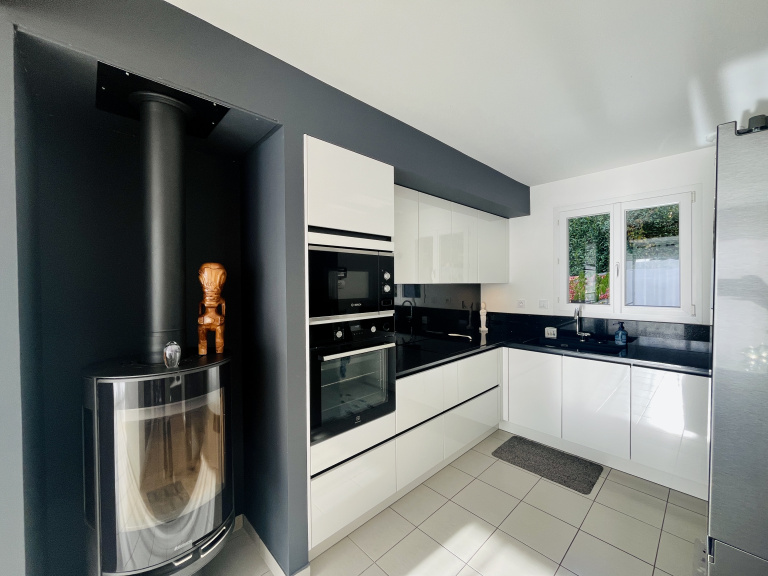 L'intérieur est à la fois rustique et moderne : un joli poêle à bois pour passer d'agréables soirées au coin du feu en hiver.